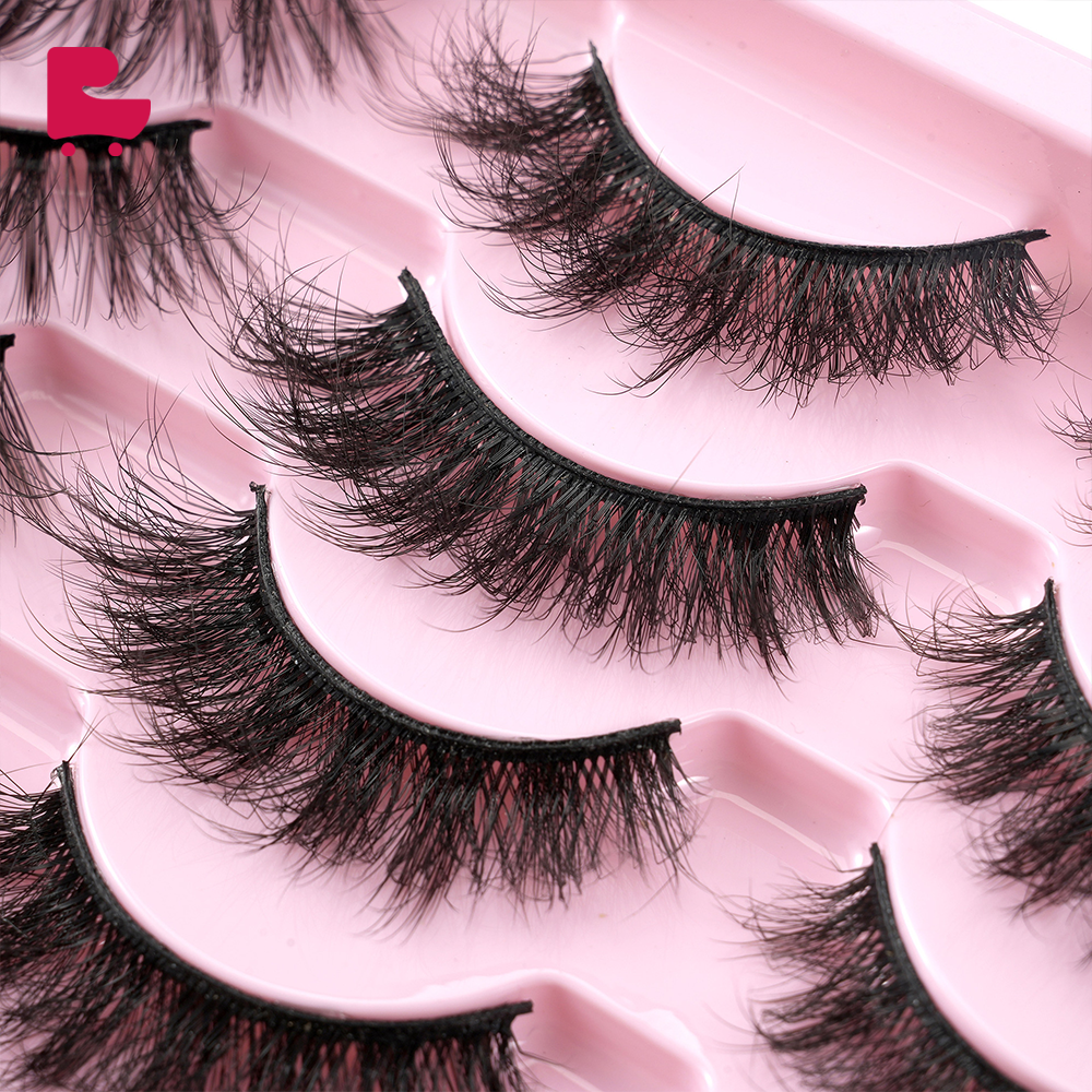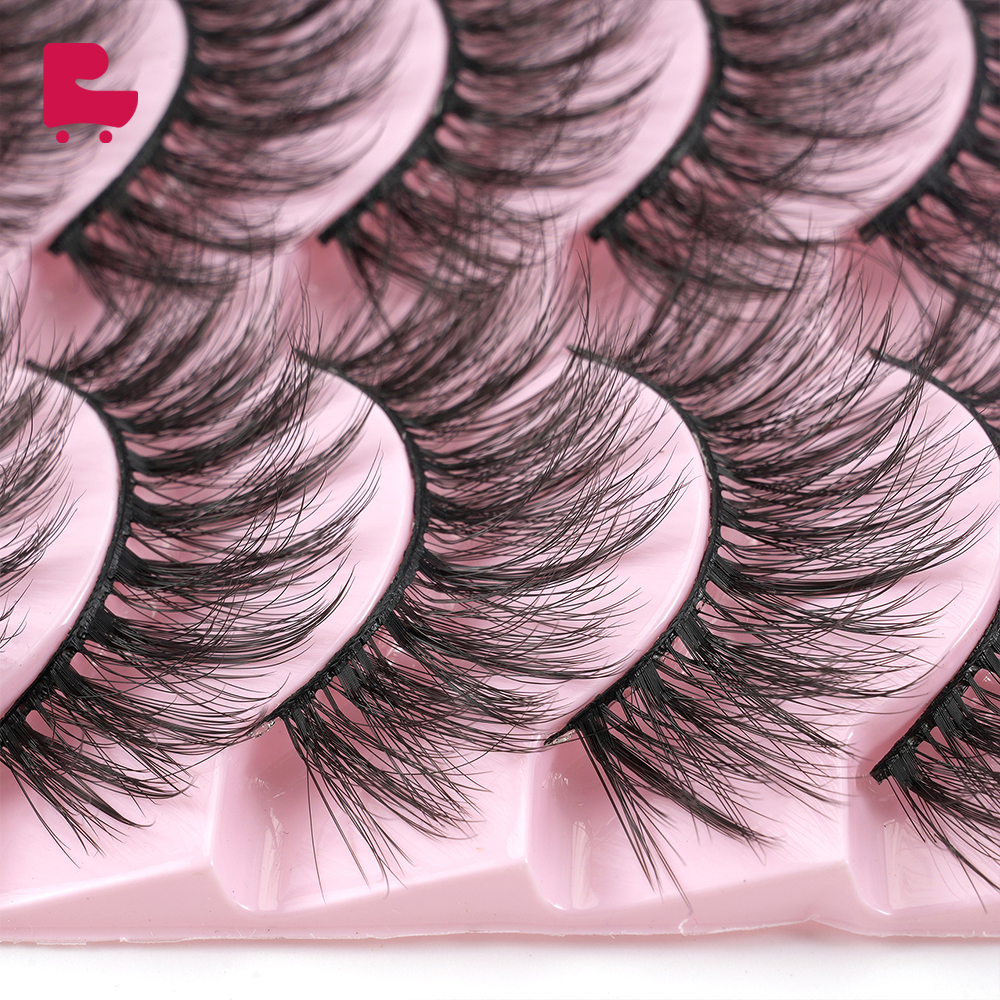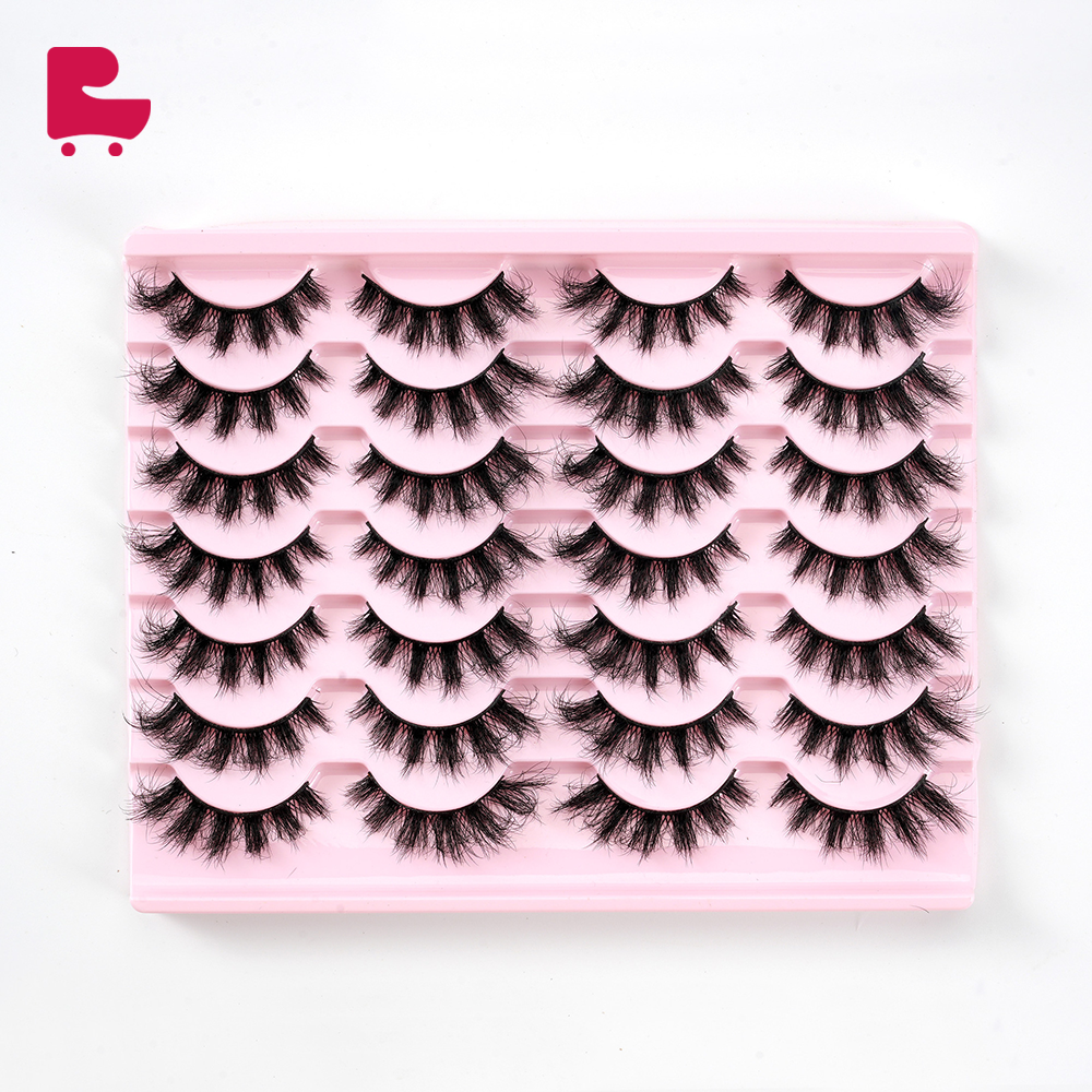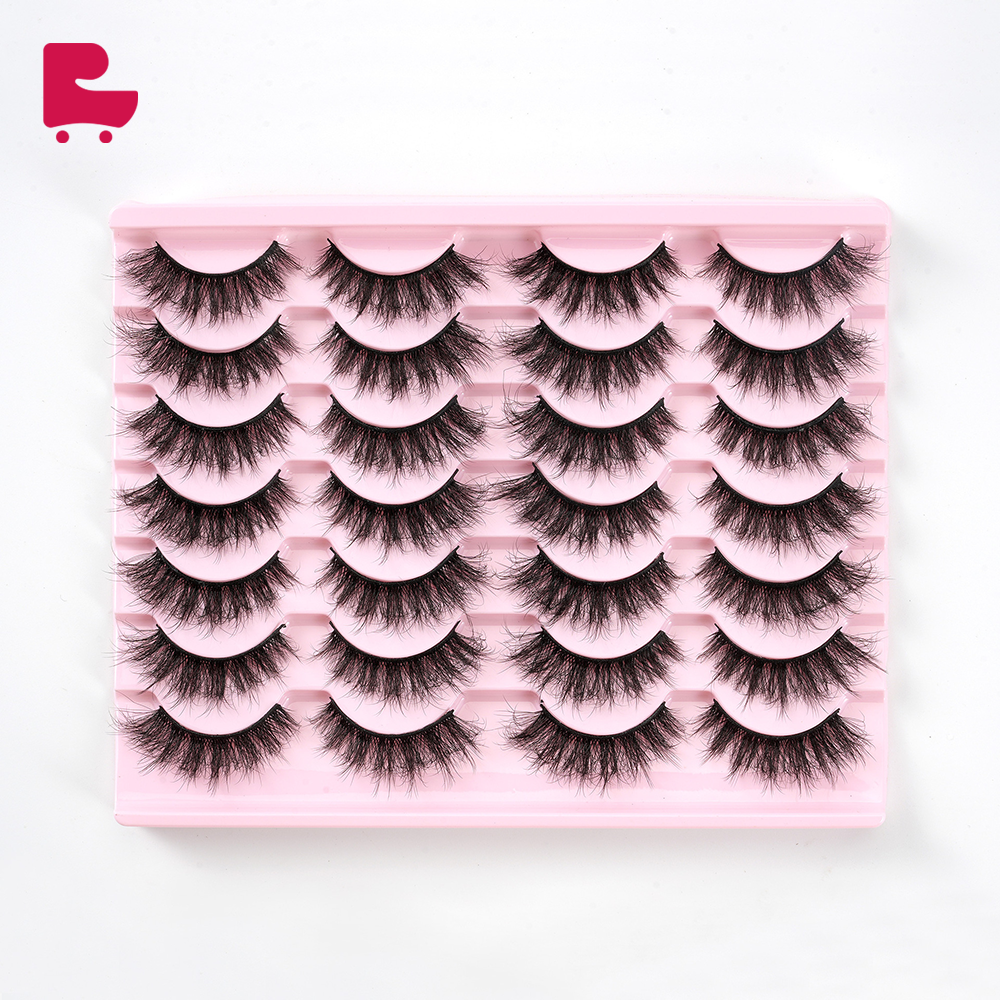 携带方便:假睫毛整齐地放在一个粉红色的塑料盒中,盒子分为两列,每列五个部分,方便随时取用和存放。小巧轻便的设计让您随时随地轻松补妆。