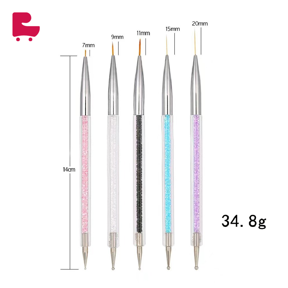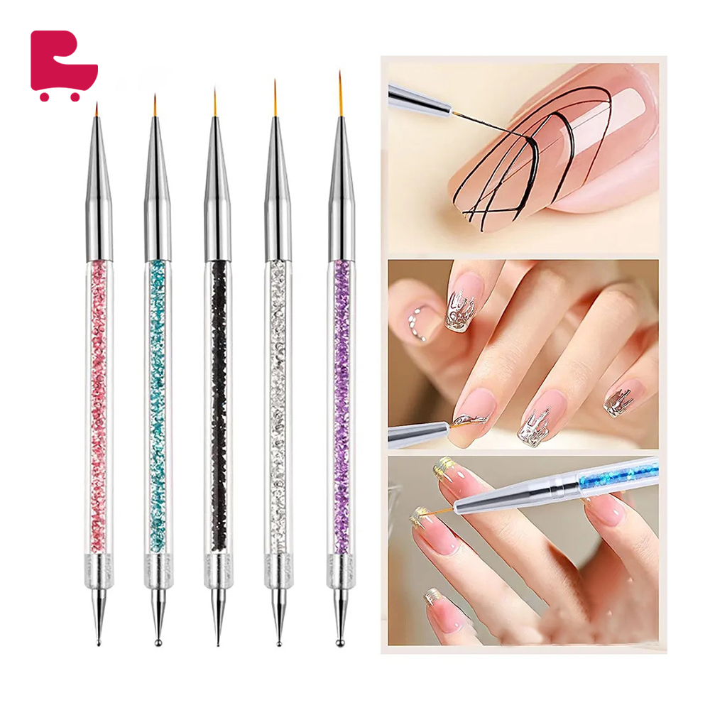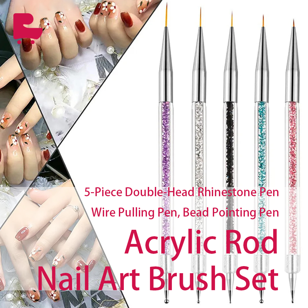 5-Piece Double-Head Rhinestone Pen, Wire Pulling Pen, Bead Pointing Pen, Flower Pointing Pen, Acrylic Rod Nail Art Brush Set. This set includes 5 double-head nail art pens, each designed for specific functions such as rhinestone placement, wire pulling, bead pointing, and flower detailing. Made from high-quality acrylic rods and featuring fine tips, these pens are perfect for precise nail art applications.