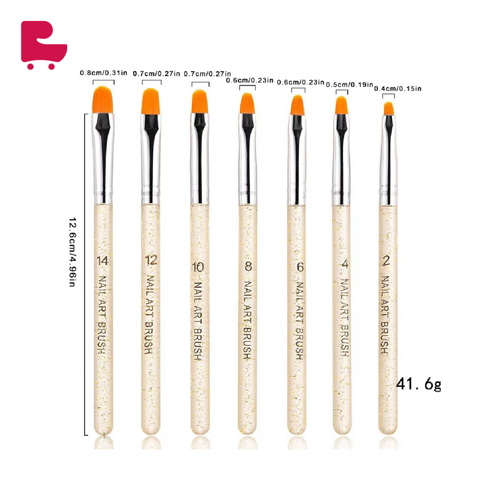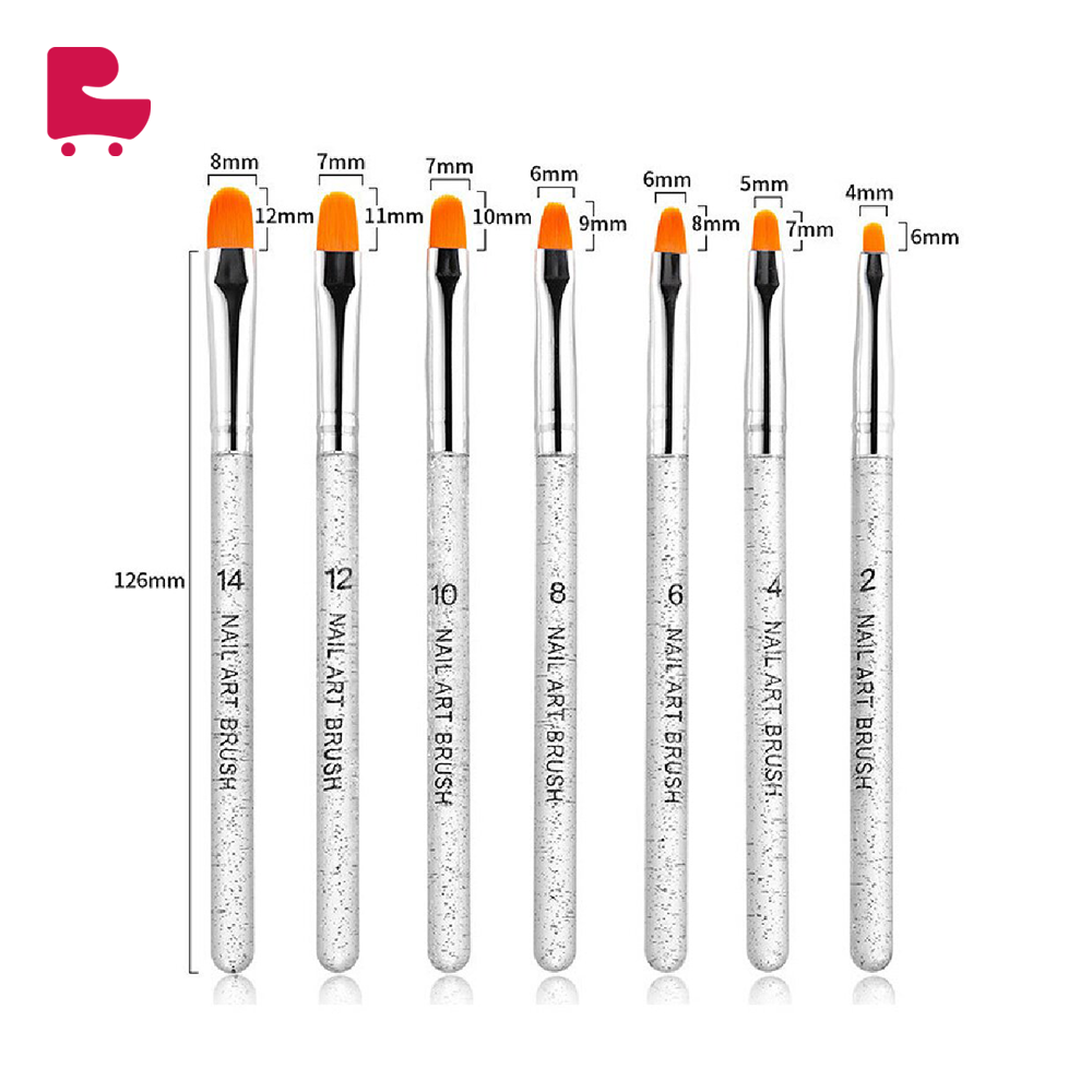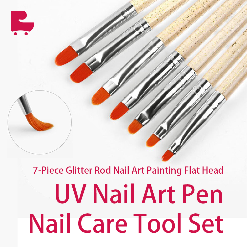 7-Piece Glitter Rod Nail Art Painting Flat Round Head UV Nail Art Pen, Nail Care Tool Set. Includes 7 different size nail art pens with flat round head design for precise painting and glitter application. Made of soft and even bristles for smooth application.