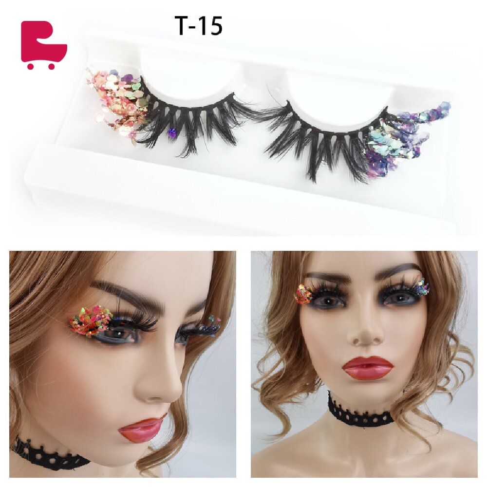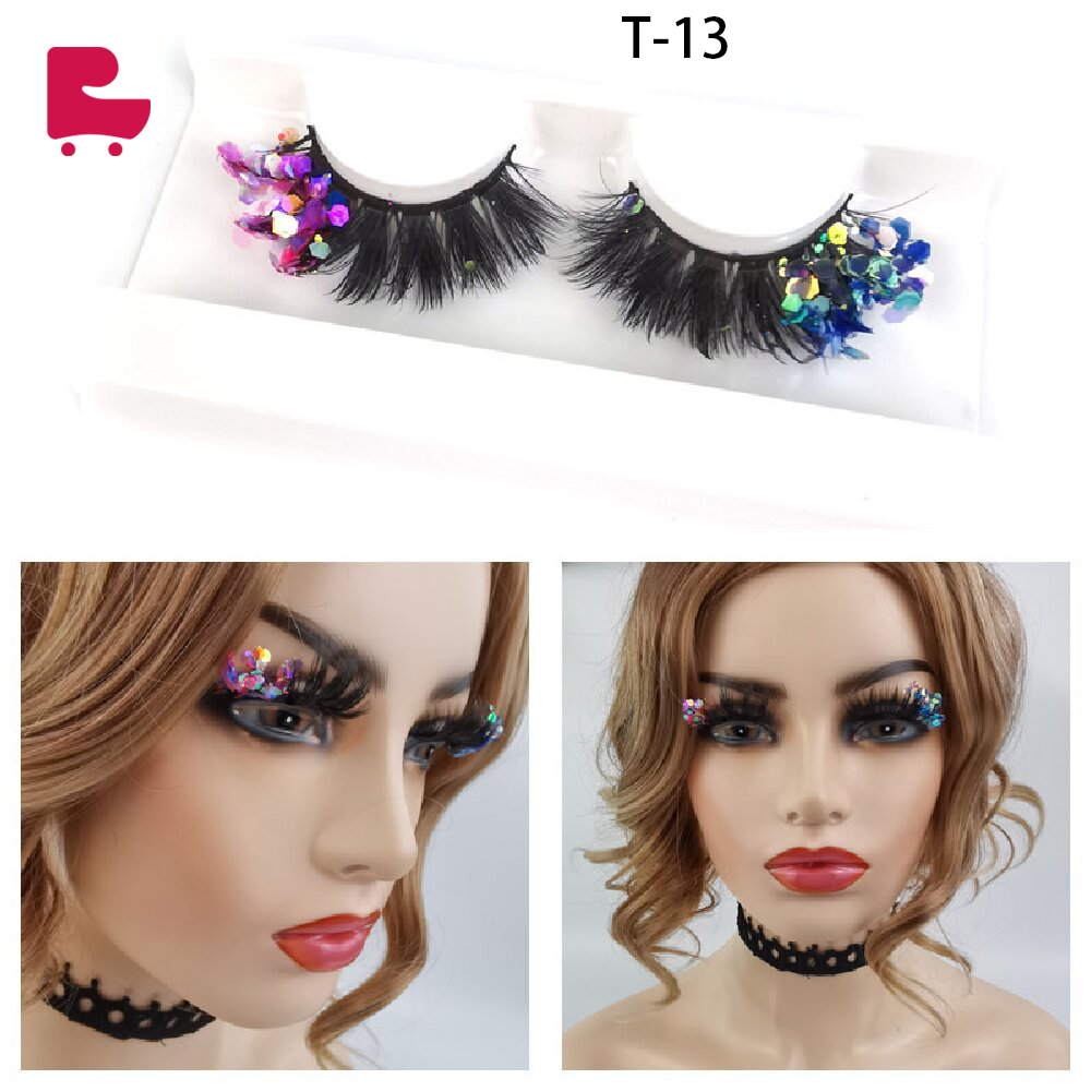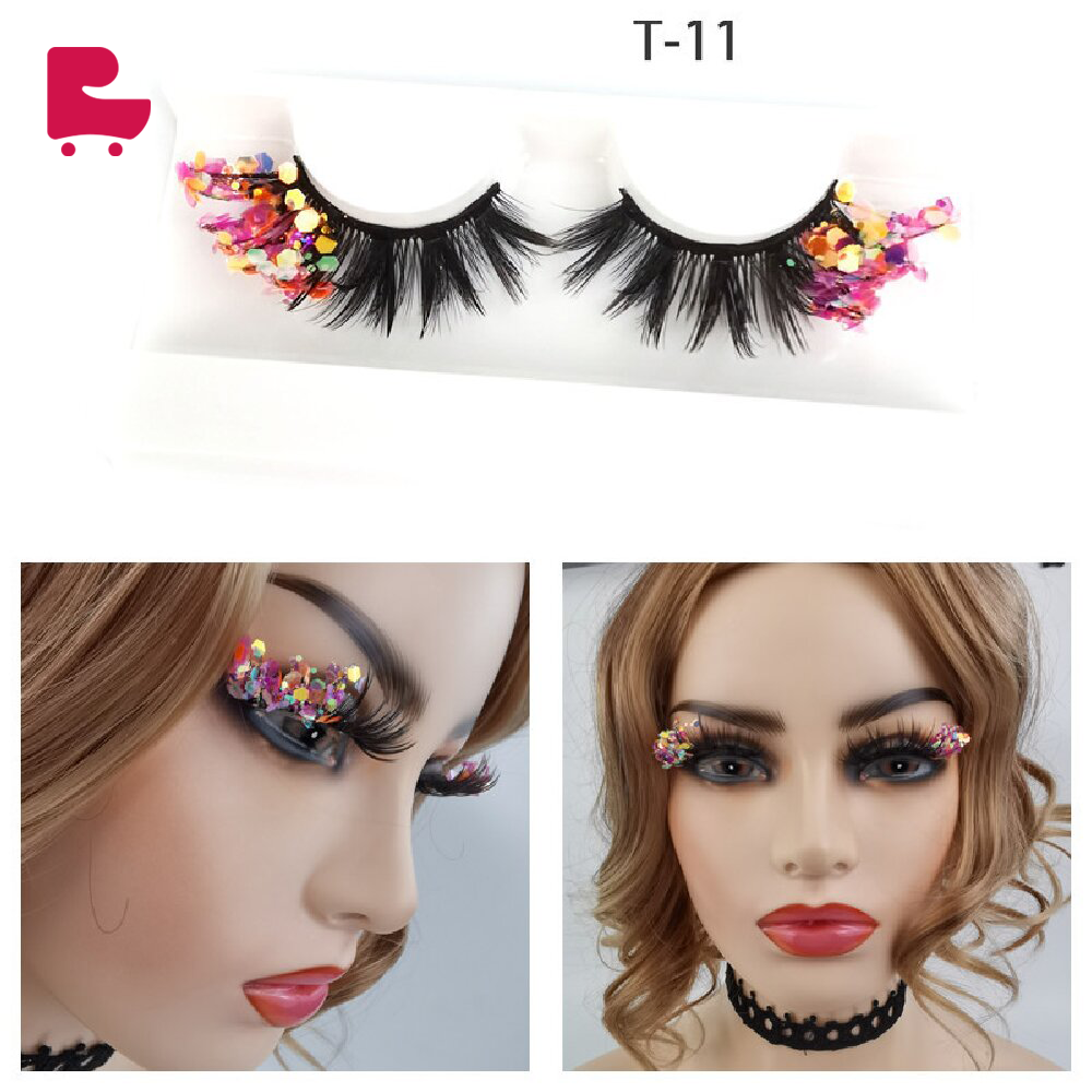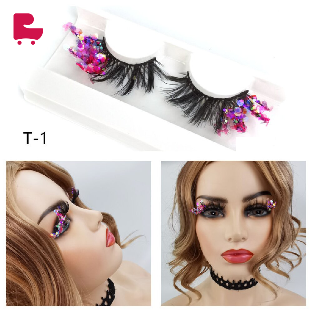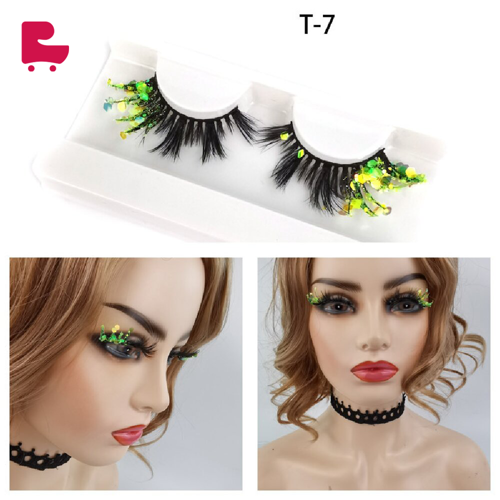 The glittery eyelashes are made by handcrafting eyelashes with glitter, with a unique and bold style, creating a distinctive visual effect that makes you stand out in the crowd. Despite the bold appearance, these eyelashes are lightweight and comfortable to wear. The elastic band is easy to stick and firmly adhere, ensuring that your eyelashes stay in place without causing any discomfort or irritation.
