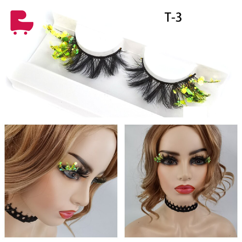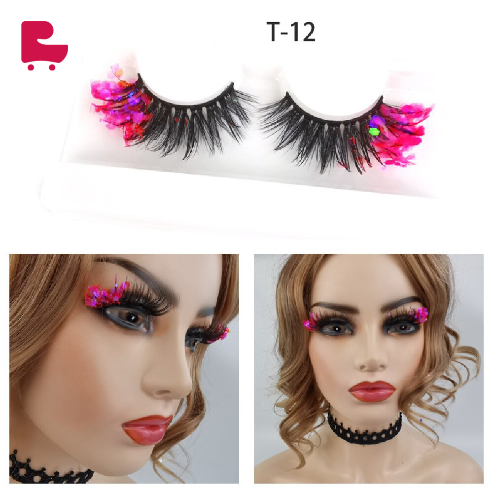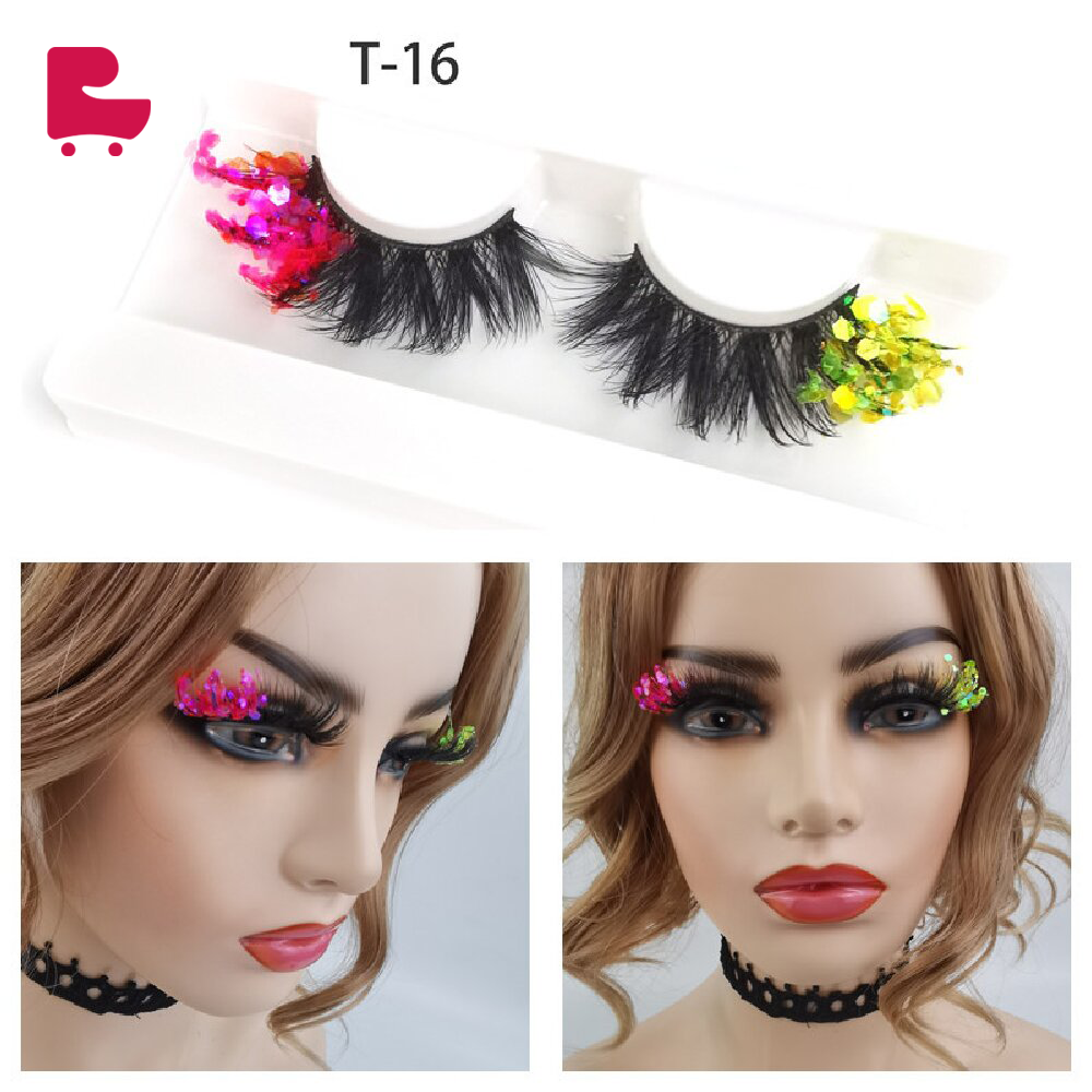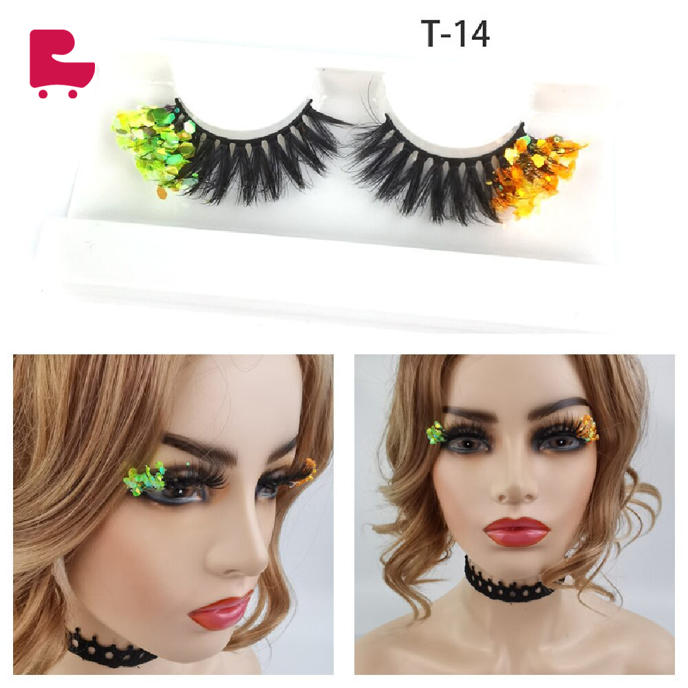 The glittery eyelashes are made by handcrafting eyelashes with glitter, with a unique and bold style, creating a distinctive visual effect that makes you stand out in the crowd. Despite the bold appearance, these eyelashes are lightweight and comfortable to wear. The elastic band is easy to stick and firmly adhere, ensuring that your eyelashes stay in place without causing any discomfort or irritation.