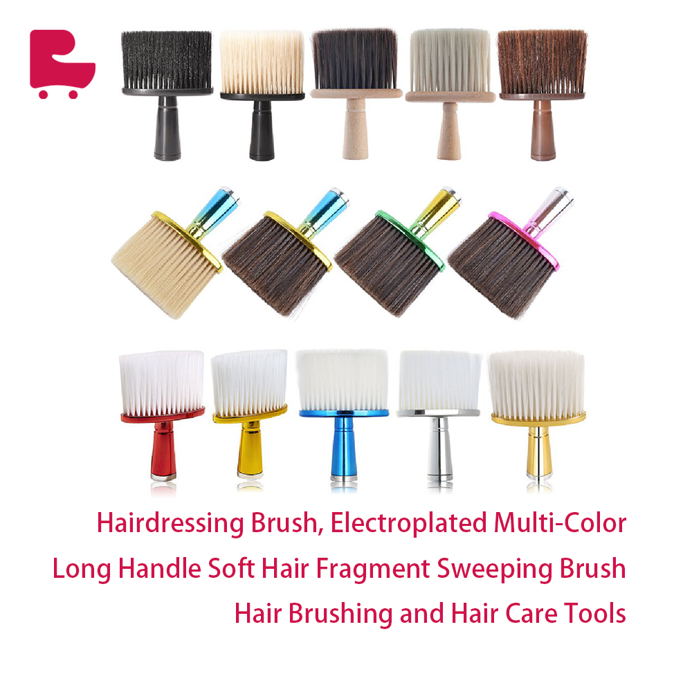 Electroplated Multi-Color Long Handle Soft Hair Fragment Sweeping Brush, Hair Brushing and Hair Care Tools, Hairdressing Brush. Features electroplated design in various colors, long handle for easy operation, and soft bristles for gentle hair sweeping.