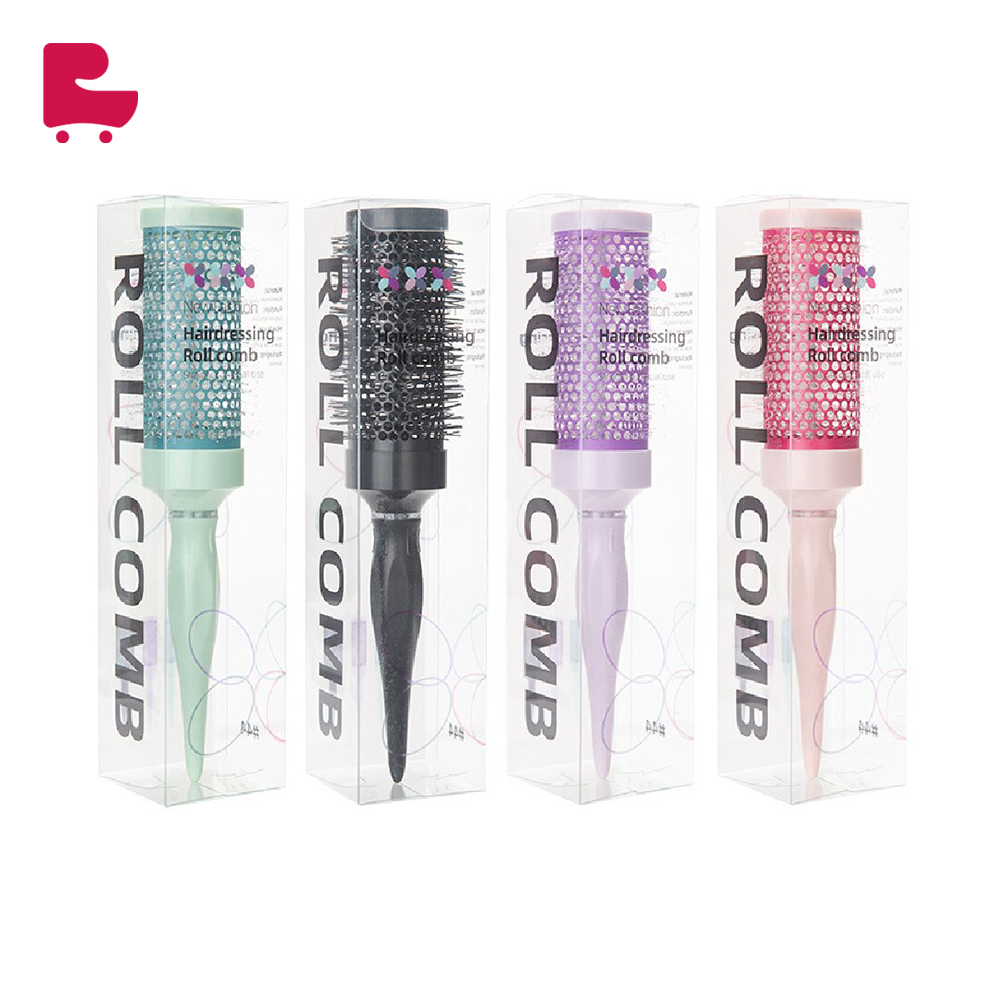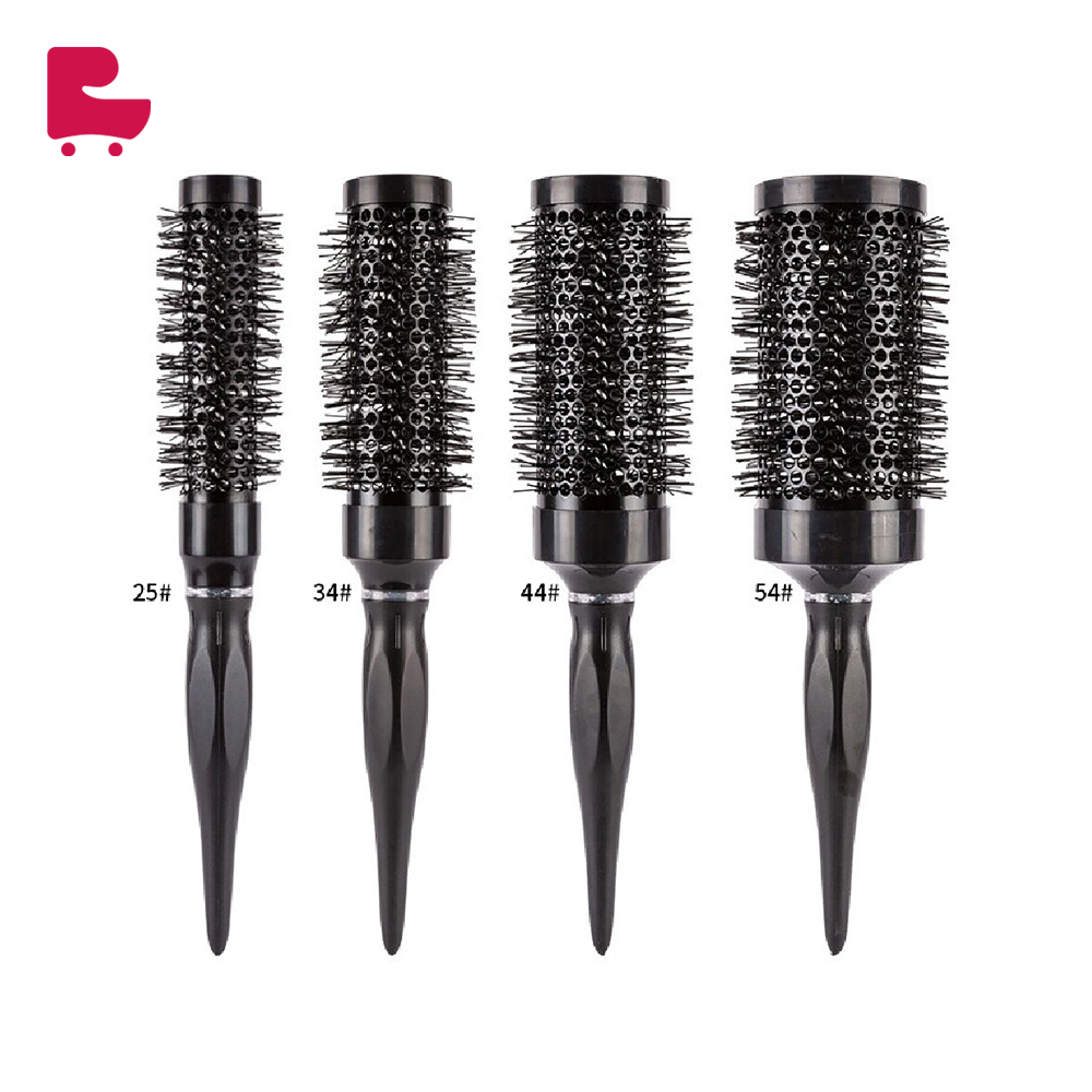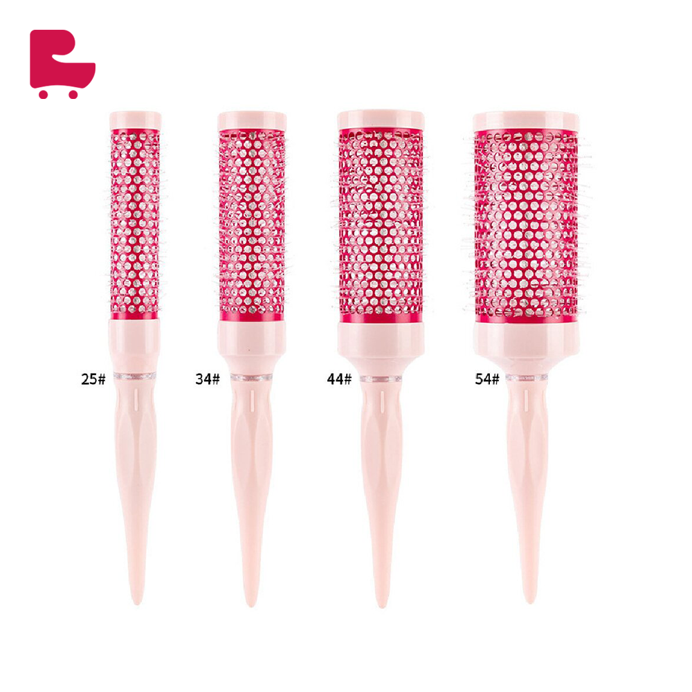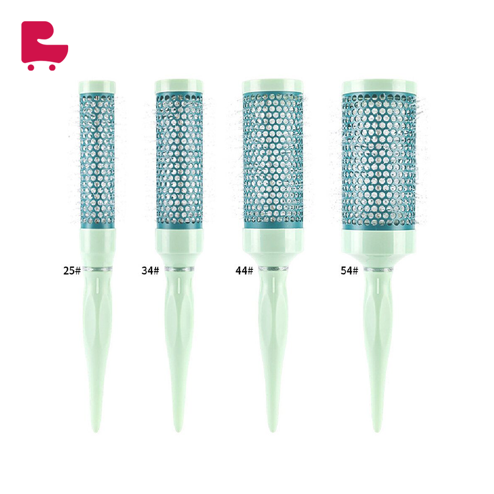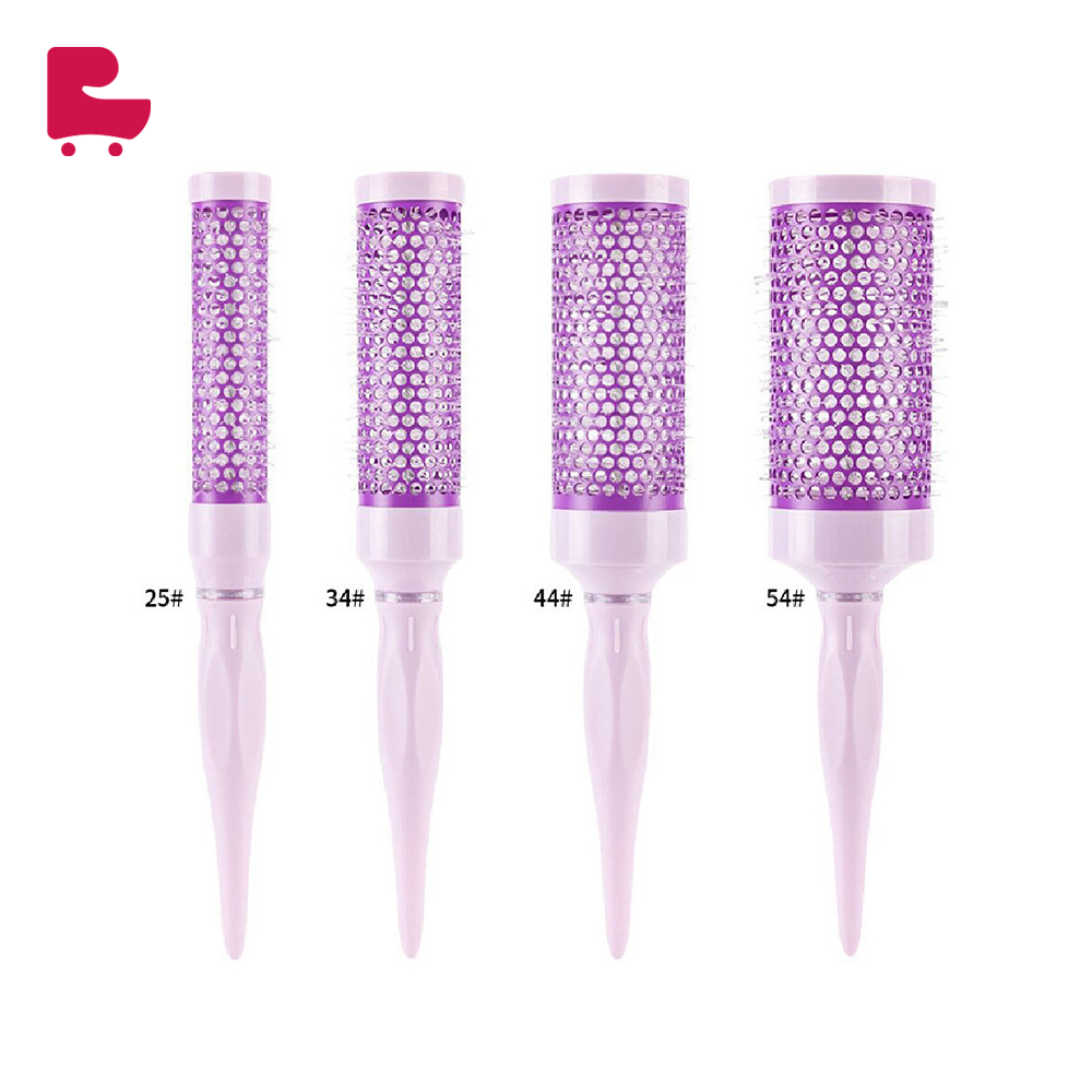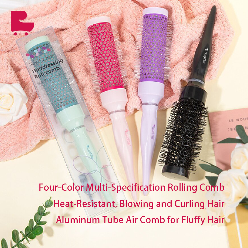 Four-Color Multi-Specification Rolling Comb, Round Comb for Blowing and Curling Hair, Heat-Resistant Aluminum Tube Air Comb for Fluffy Hair. Available in black, pink, green, and purple colors, made of heat-resistant aluminum tube, and designed for creating fluffy hairstyles.