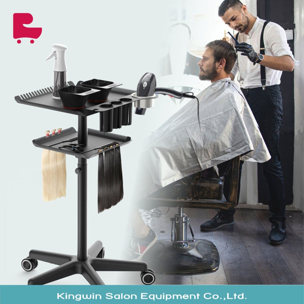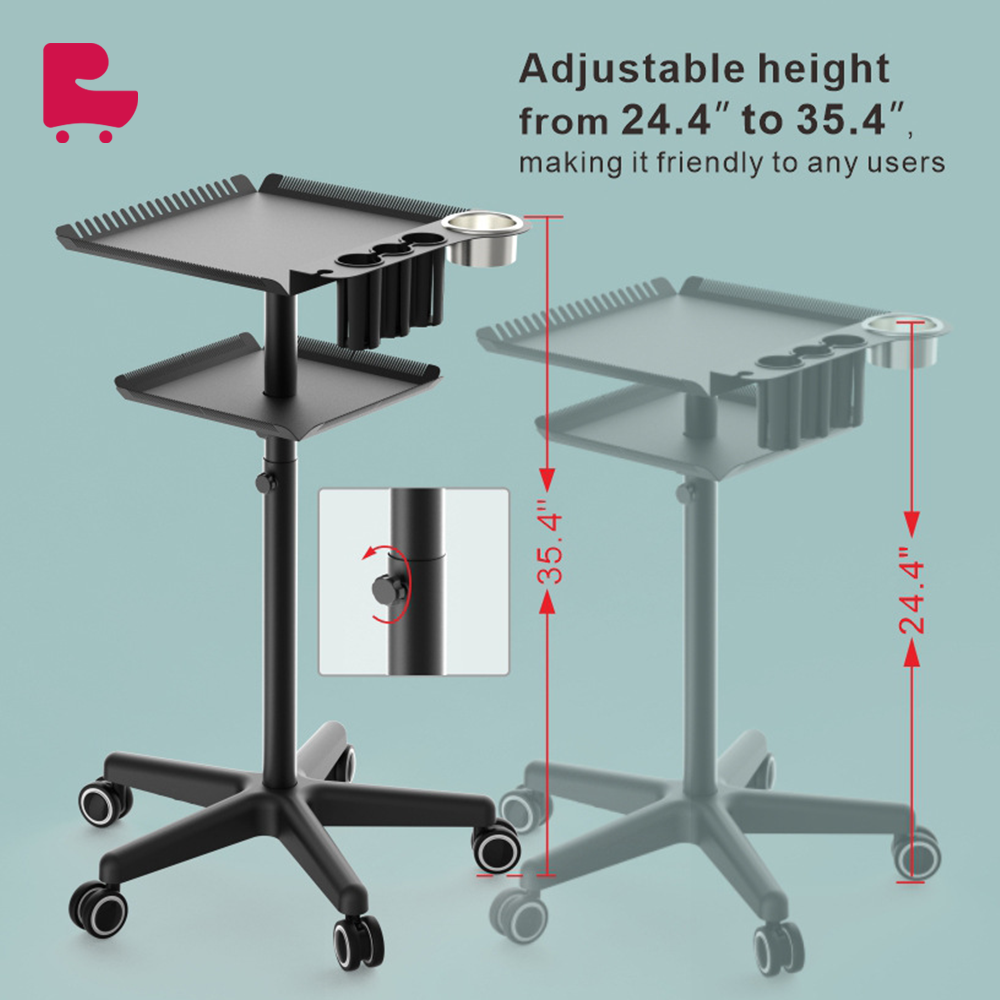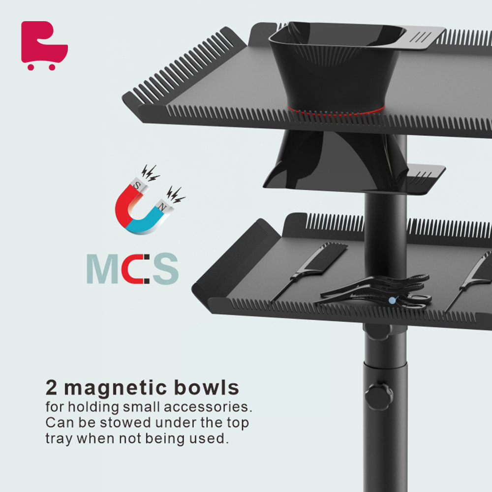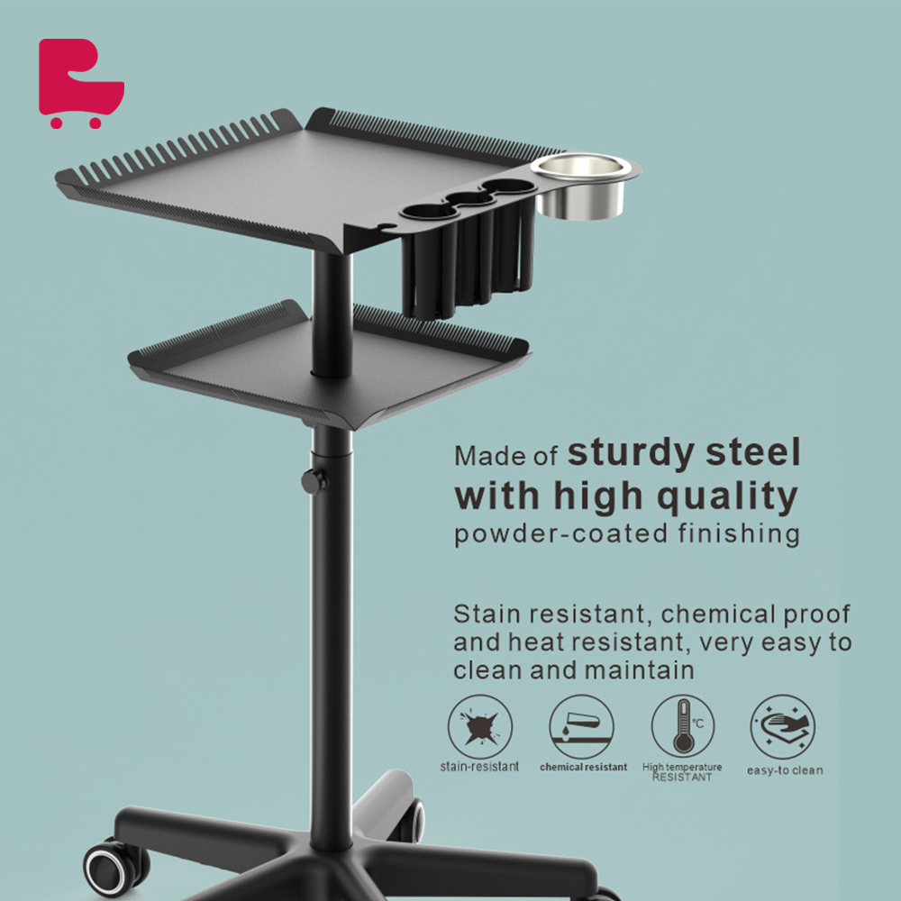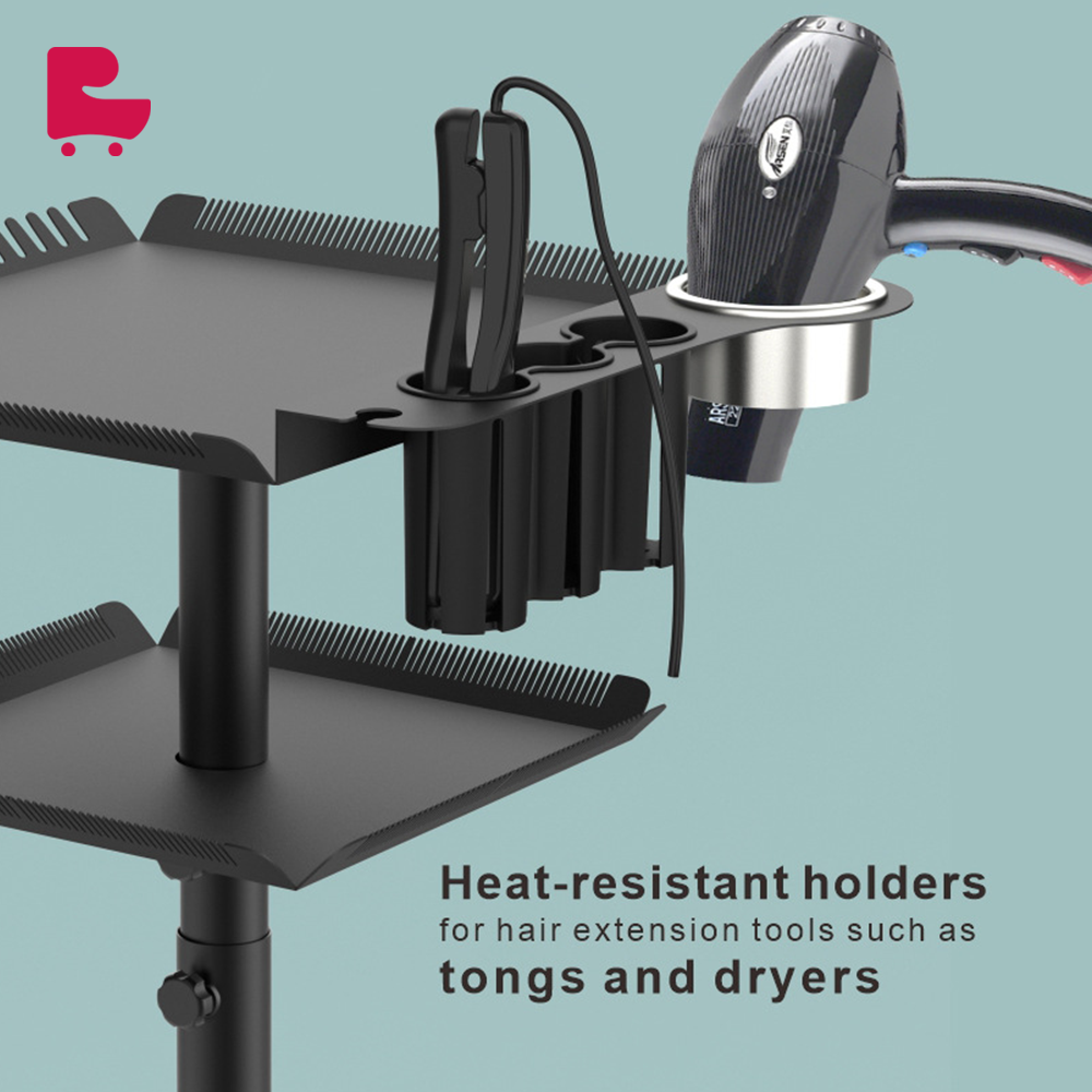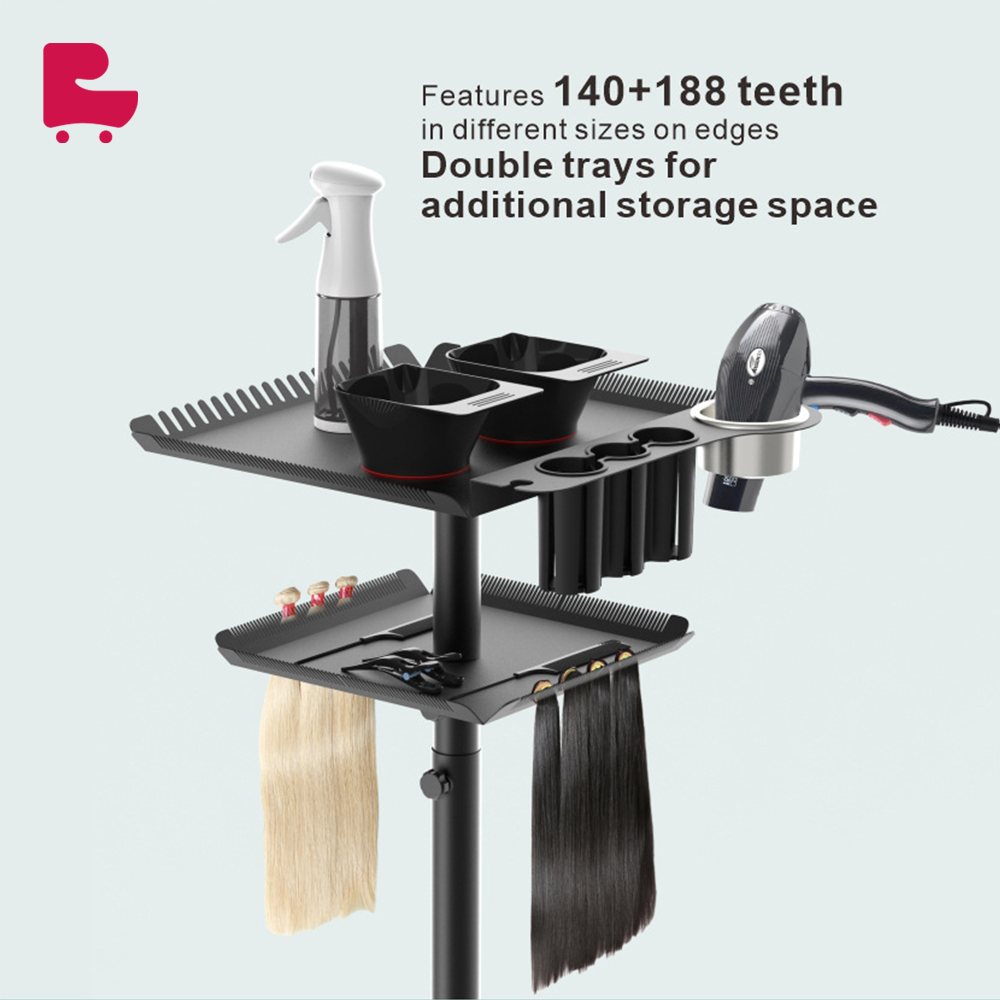 Professional design: Customized for hair extension services, meeting the various needs of hairstylists in salon work. The tray is neatly arranged with scissors, combs and other beauty supplies, convenient to use, and improve work efficiency. Easy to move: Equipped with four smooth wheels, you can easily move the tray cart in the salon, providing services to customers anytime and anywhere. Large capacity storage: The tray cart has a double-layer tray, spacious storage space, which can accommodate a variety of hairdressing tools and accessories, meeting your diverse work needs.