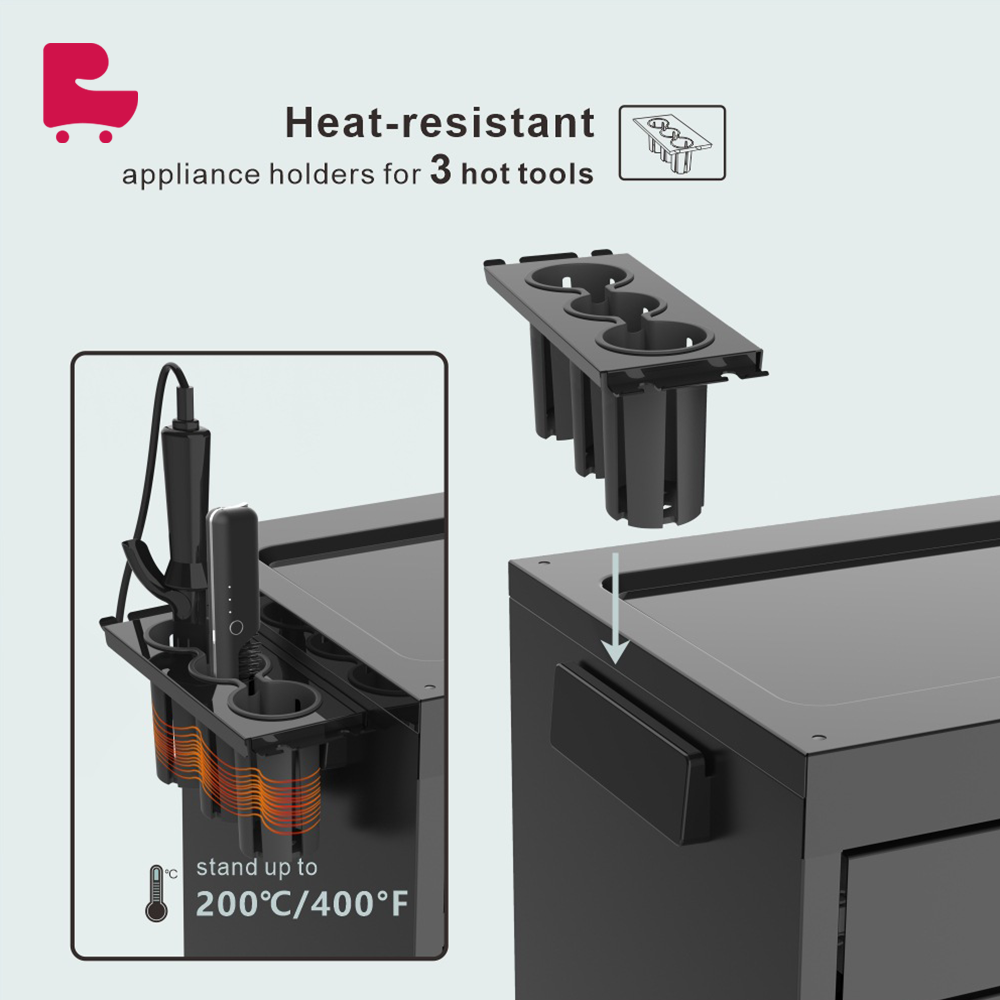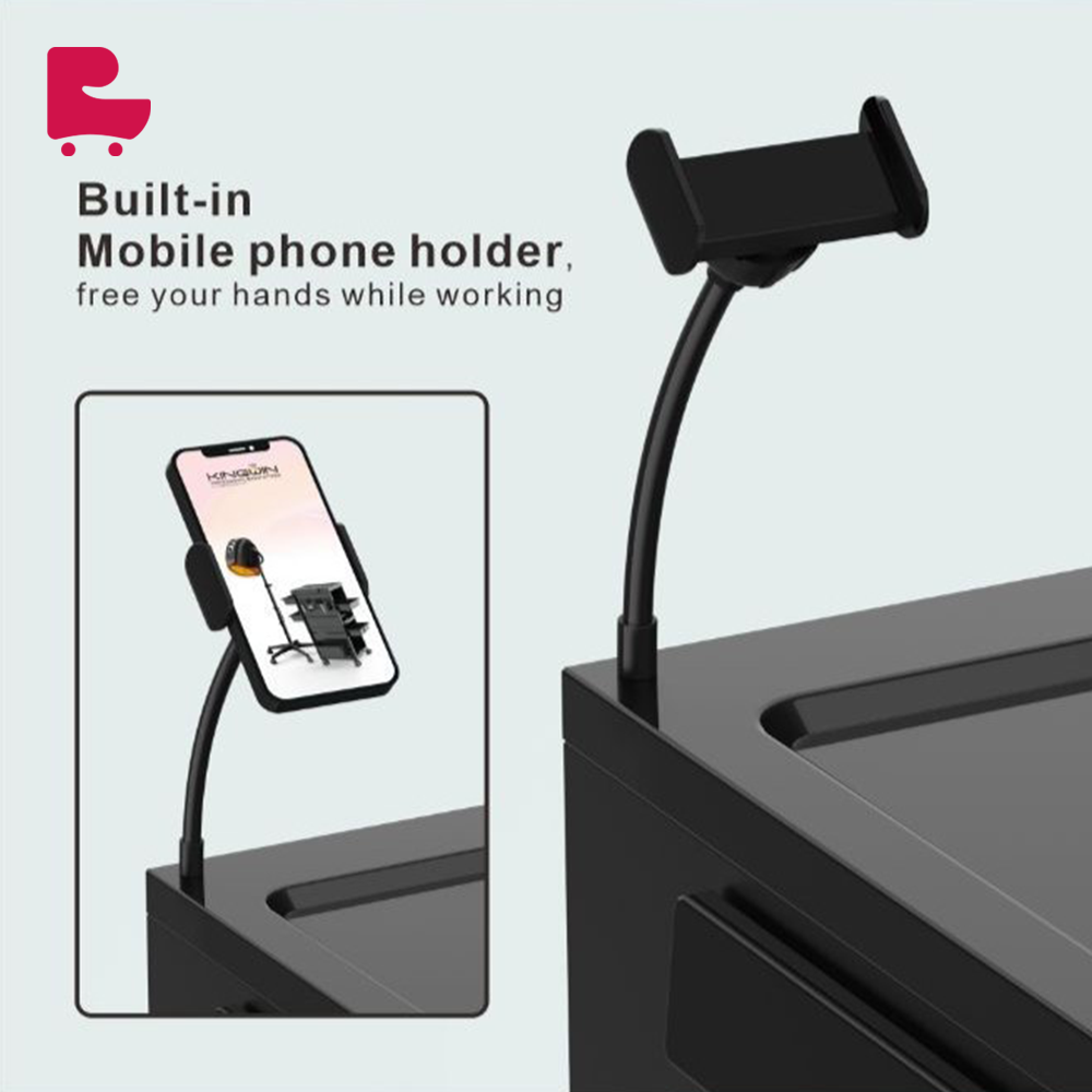 Maximize space utilization: Through the design of drawers and storage baskets, every inch of space on the workbench is fully utilized, making your items more orderly. Beautiful and practical: The black appearance is simple and fashionable, not only strong in practicality, but also adds a touch of beauty to your working environment. Multi-functional top shelf: The top is designed with an adjustable shelf, perfectly suitable for various sizes of mobile phones, allowing you to easily view and operate electronic devices during work, improving work efficiency. Easy to clean and maintain: The surface is smooth and flat, easy to wipe clean, keeping the workbench clean and new.