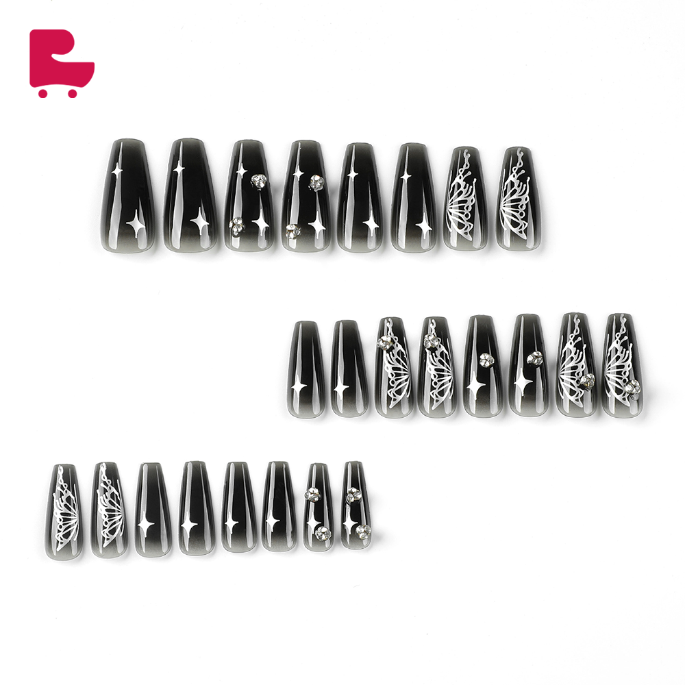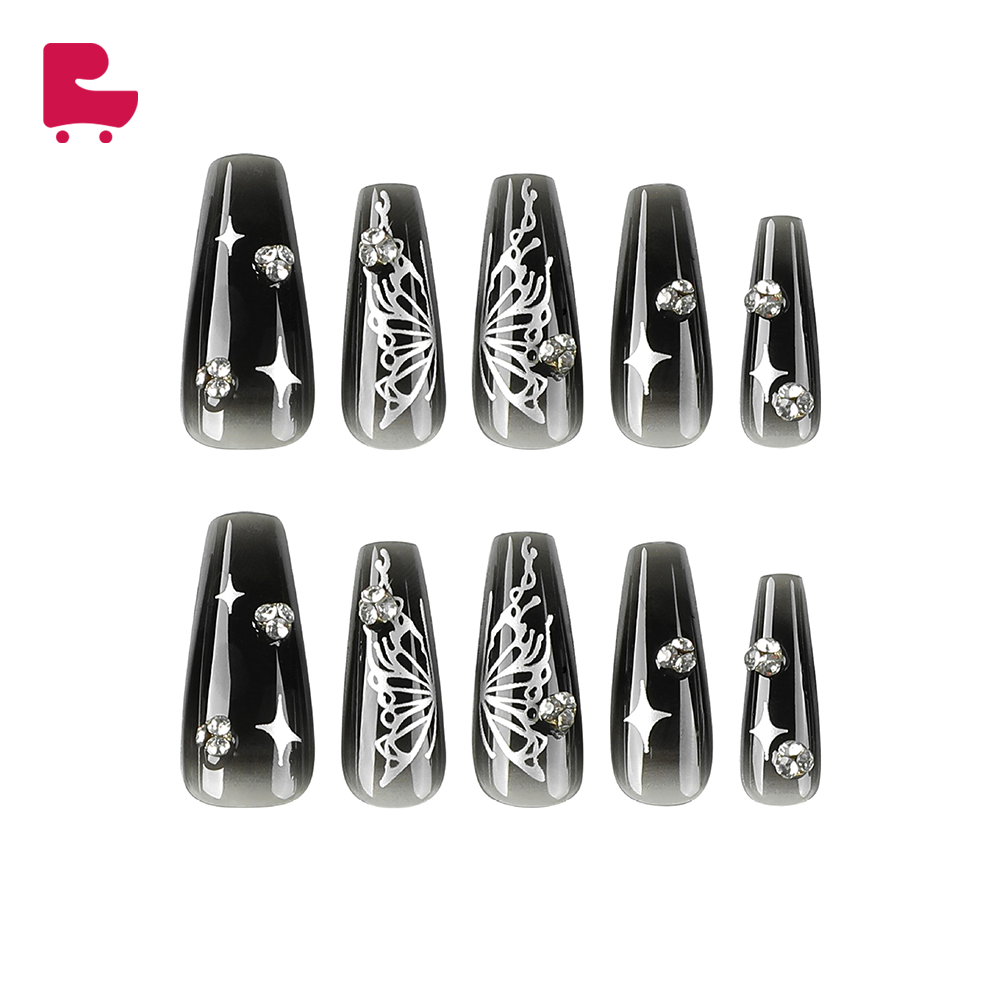 Elaborate design: Each nail is carefully designed with stars, moon, butterflies and flowers, which symbolize romance, elegance and freedom. Stars and moon patterns appear to sparkle in the night sky, while butterflies and flowers dance on your fingertips, adding a touch of mystery and charm to your manicure.