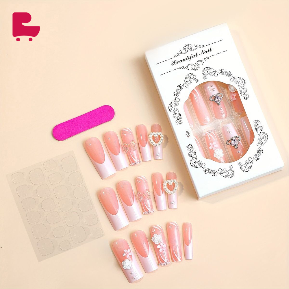Pink and white two-tone design: The nail polish uses pink and white as the main tones, the two intertwine to create a warm and romantic atmosphere. Pink represents sweetness and gentleness, while white symbolizes purity and elegance. The combination of the two makes your manicure more attractive.