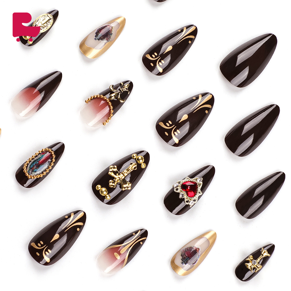 Luxurious undertone: All fake nails are based on black. Black represents mystery, nobility and elegance. It blends perfectly with the decorative elements of gold and red for an unrivalled sense of luxury.