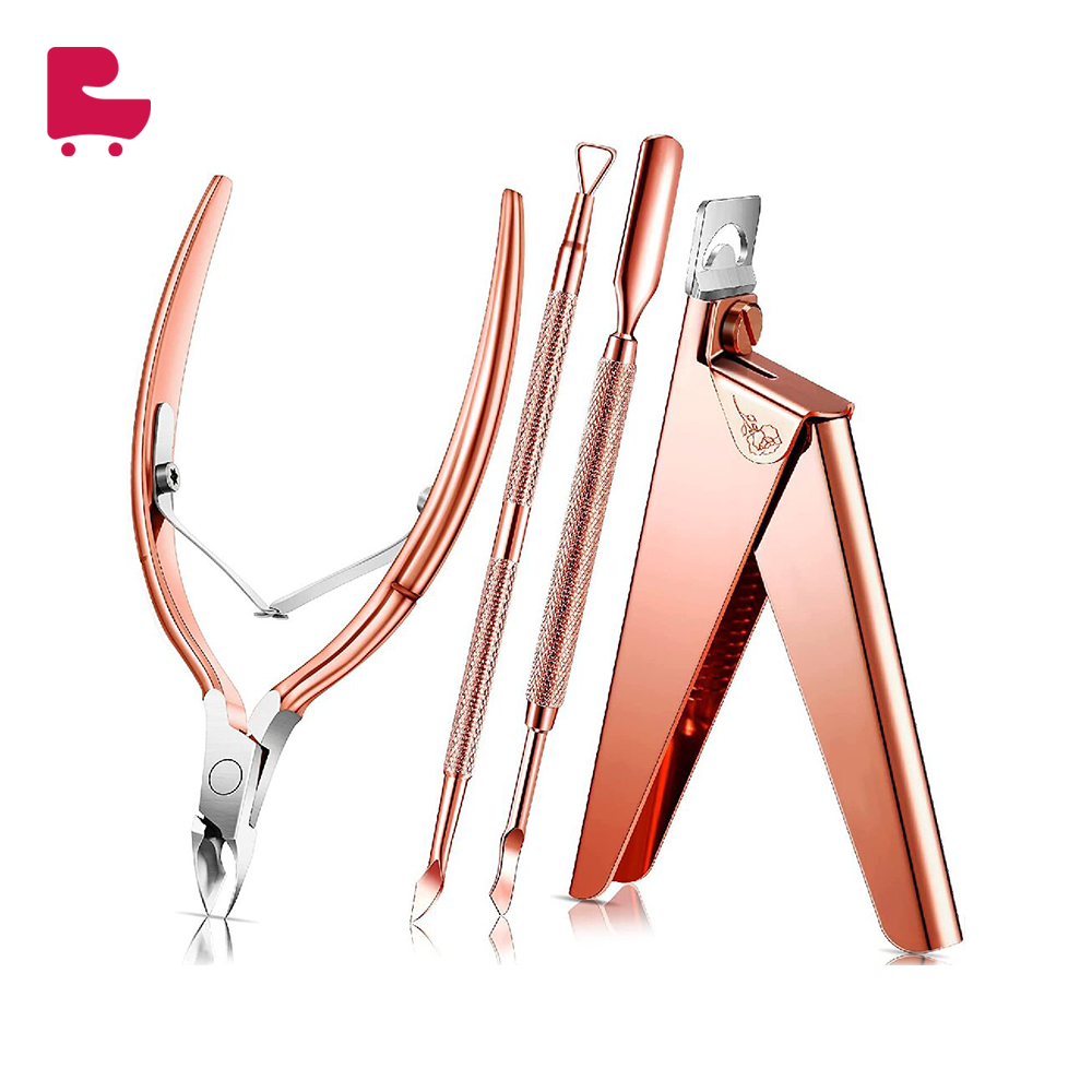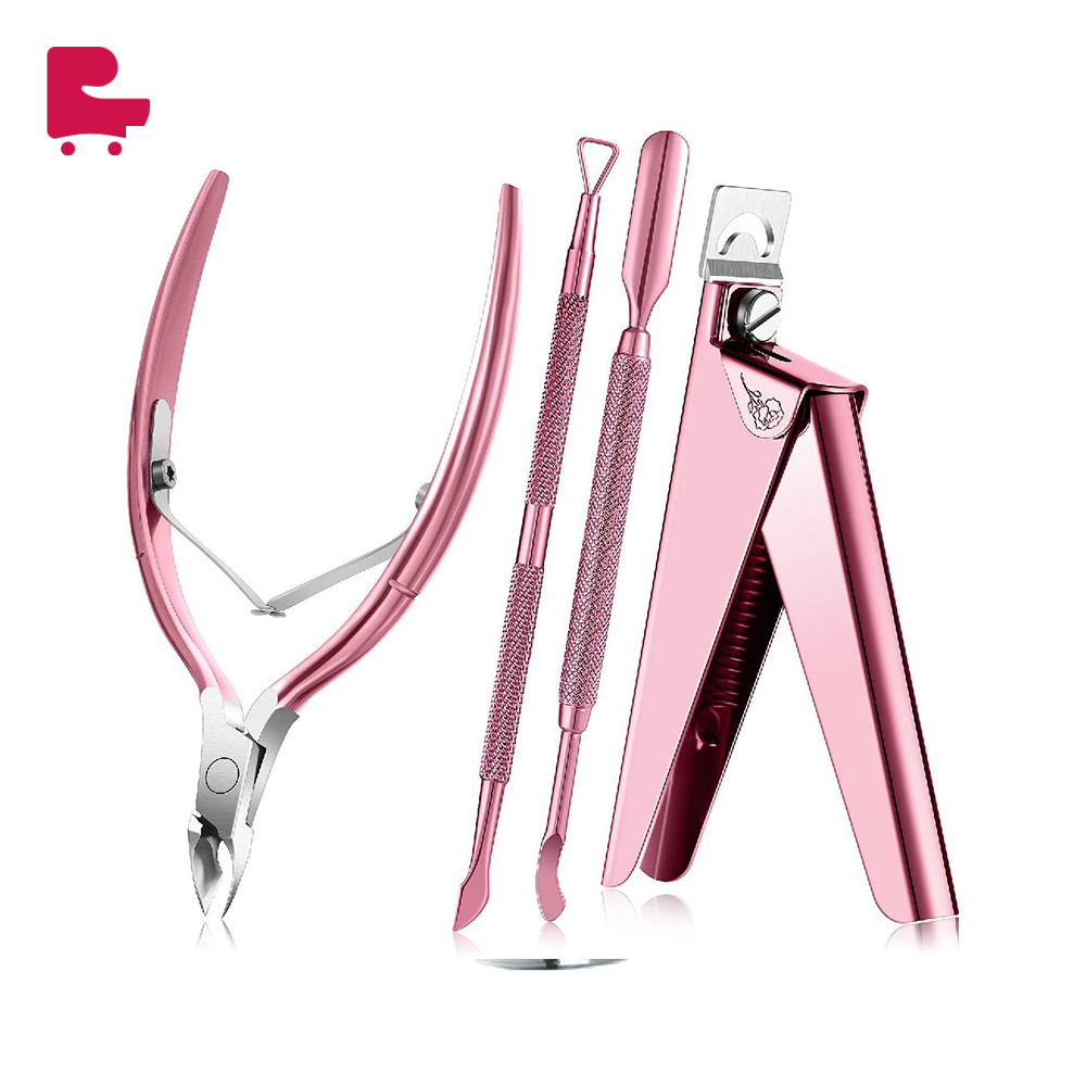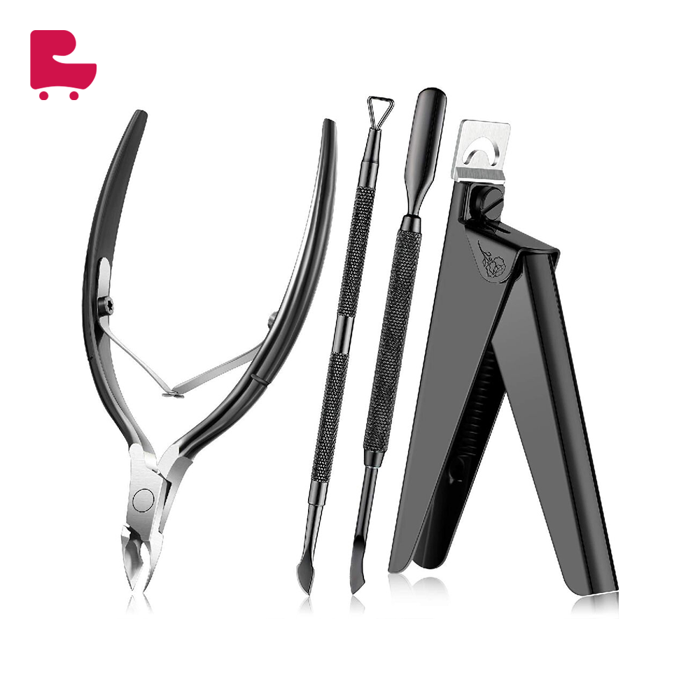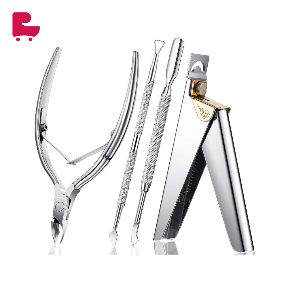 Stainless Steel Nail Care Tool Upright Nail Art One-Word Scissors Combination Four-Piece Set. Made of high-quality stainless steel, coated for durability and aesthetics. Upright design for stability, includes one-word scissors, double-head large slant pusher, double-head nail remover, and cuticle scissors.